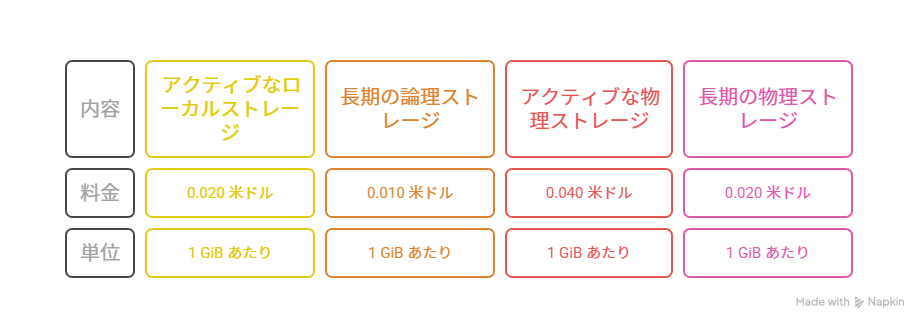 以下、 BigQuery のストレージにおける料金を表にまとめます。