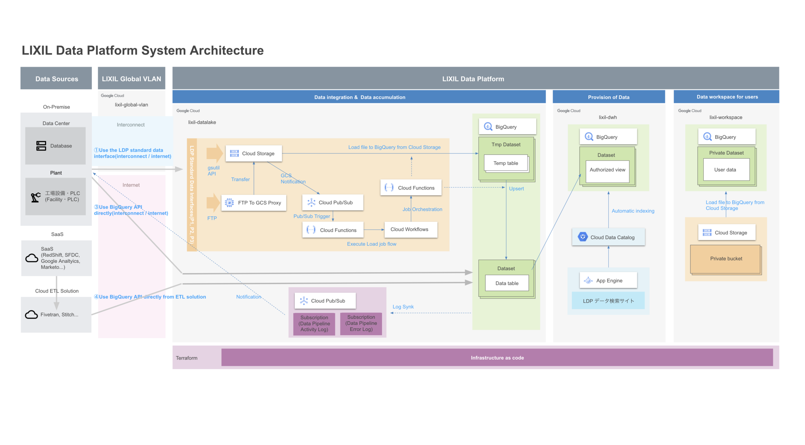 ※参照元: Google 公式サイト「LIXIL:BigQuery を中心としたデータ活用基盤 LIXIL Data Platform を構築、”データ活用の民主化” を推進」