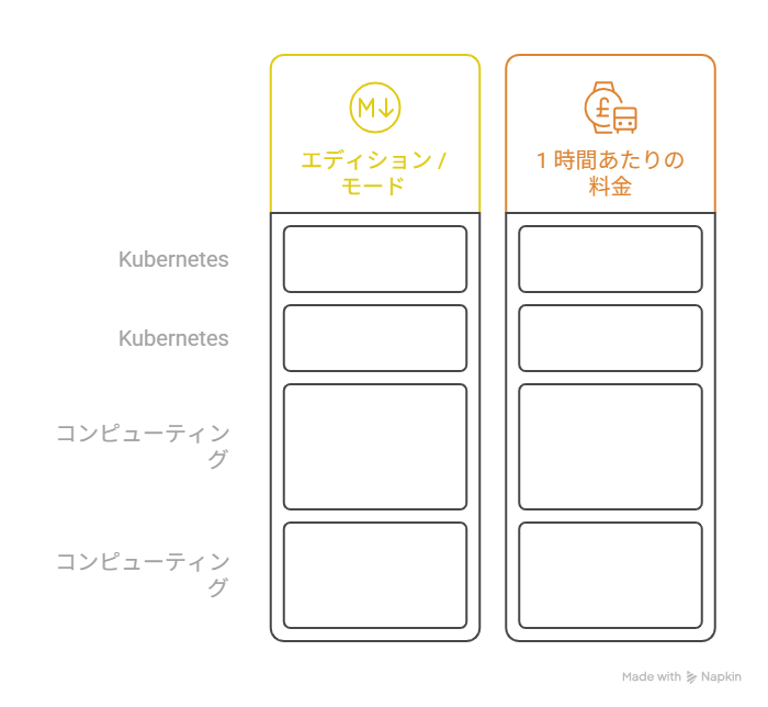 このように、 GKE の料金は利用するエディションやモードによって変動します。一点、 Enterprise エディションは vCPU ごとの課金であるのに対して、 Standard エディションはクラスタごとの課金になるため、この点には注意が必要です。